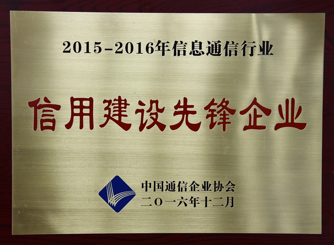我公司被中國(guó)通信企業(yè)協(xié)會(huì)評(píng)為2015-2016年信息通信行業(yè)信用建設(shè)先鋒企業(yè)