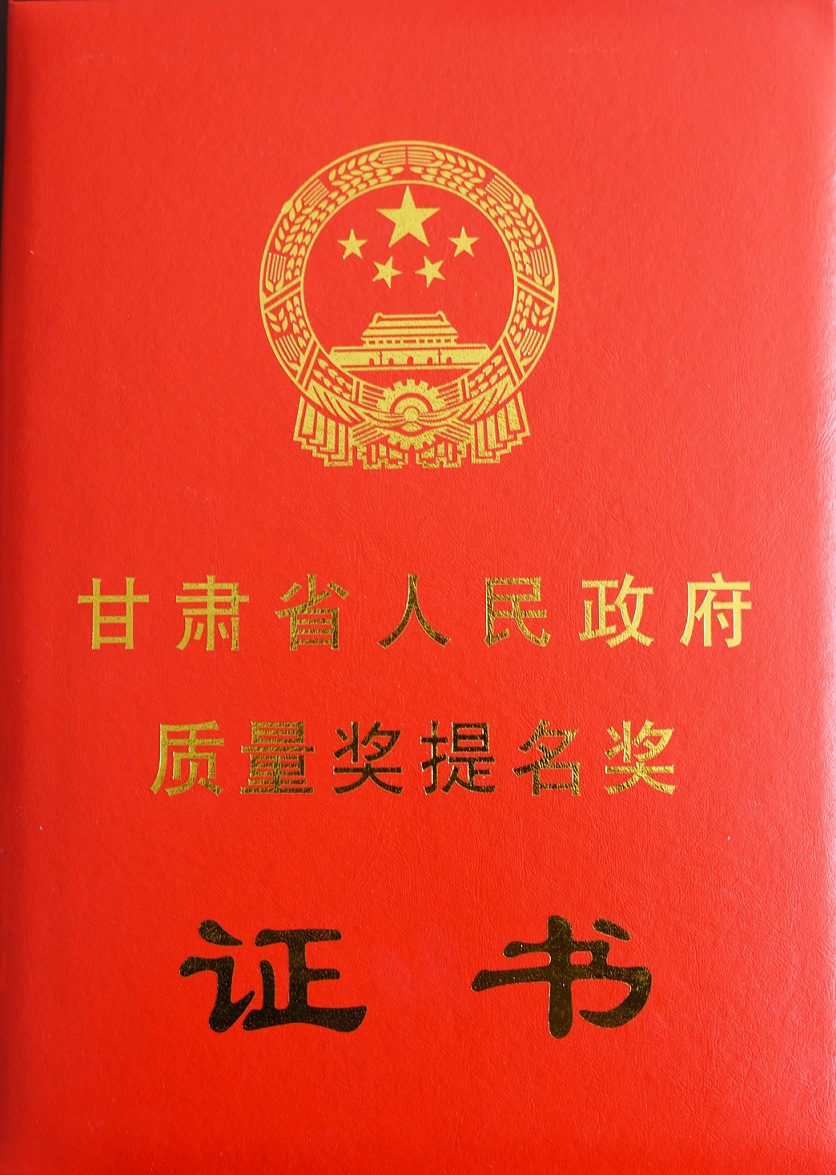 我公司榮獲2016年度“甘肅省人民政府質(zhì)量獎(jiǎng)提名獎(jiǎng)”