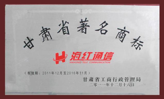 我公司“海紅通信”商標(biāo)被認(rèn)定為甘肅省著名商標(biāo)