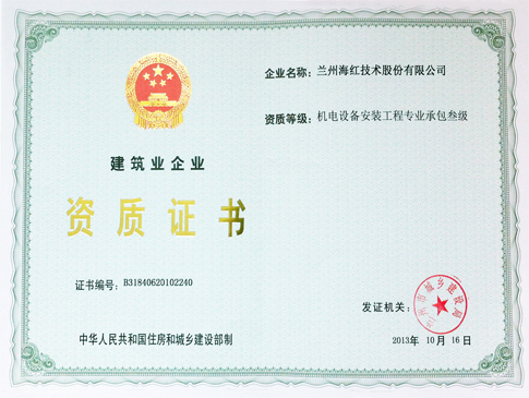 我公司獲得機(jī)電設(shè)備安裝工程專業(yè)承包三級資質(zhì)證書