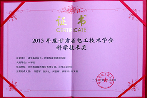 我公司獲得“2013年度甘肅省電工技術(shù)學(xué)會科學(xué)技術(shù)獎一等獎”