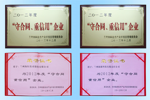 我公司獲得2012年度“守合同 重信用”企業(yè)榮譽稱號