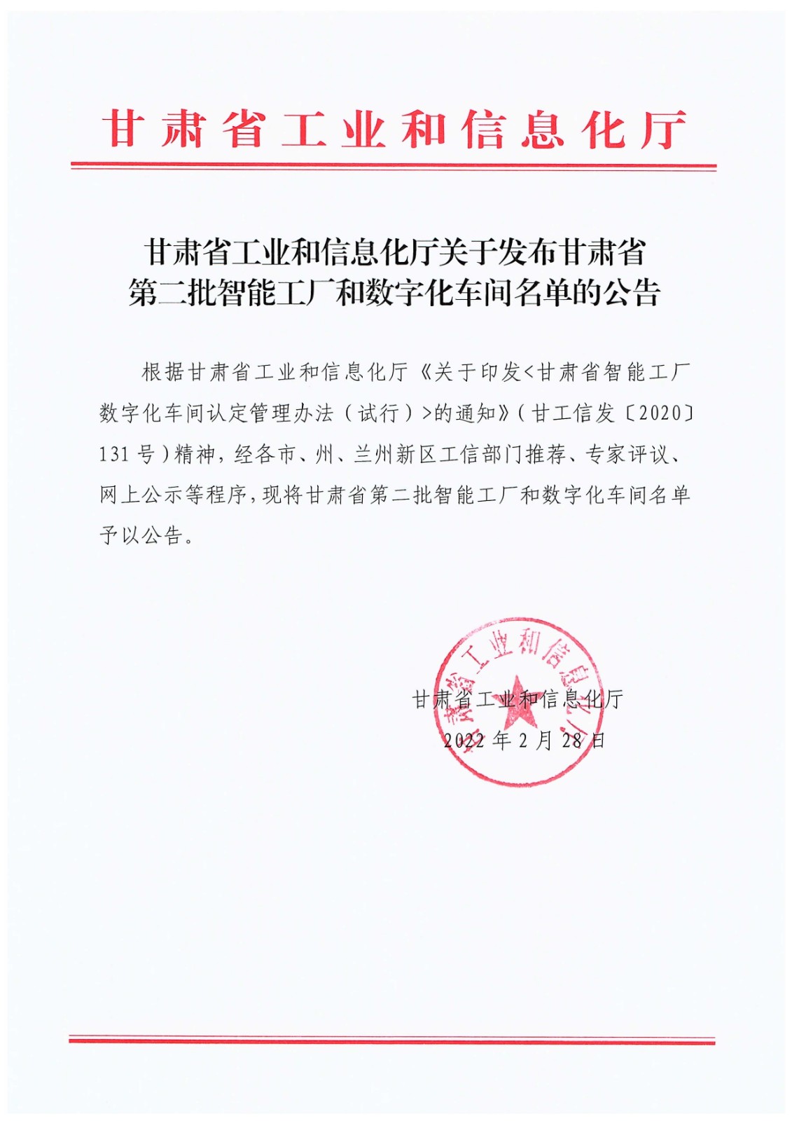 甘肅省工業(yè)和信息化廳發(fā)布甘肅省第二批數(shù)字化車間名單公告,我司鈑金車間被認(rèn)定為甘肅省第二批“數(shù)字化車間”。 近年來,公司積極響應(yīng)政府“綠色化、信息化、智能化”(三化)改...