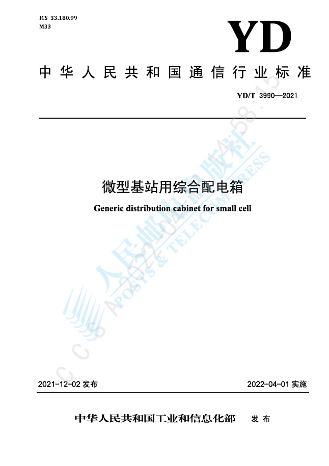 我司參與起草的行業(yè)標(biāo)準(zhǔn)《微型基站用綜合配電箱》(YD/T 3990-2021)經(jīng)中華人民共和國工業(yè)和信息化部批準(zhǔn)發(fā)布,已于2022年04月01日實施。以上標(biāo)準(zhǔn)是繼《數(shù)據(jù)設(shè)備用網(wǎng)絡(luò)機...