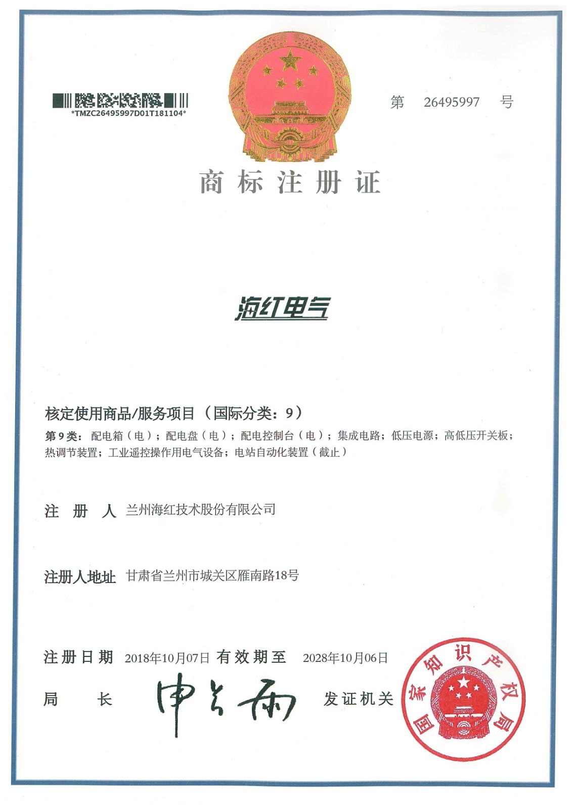 我公司再取得2項(xiàng)由國家知識產(chǎn)權(quán)局簽發(fā)的商標(biāo)注冊證,至此我公司已取得7項(xiàng)商標(biāo)注冊證。