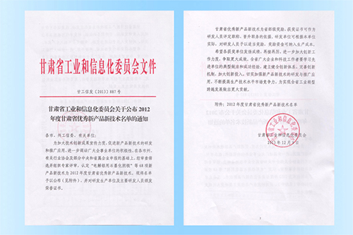 甘肅省工業(yè)和信息化委員會組織專家,對2012年省級鑒定優(yōu)秀新產(chǎn)品新技術(shù)進行了評審。其中,我公司研制的“通信基站動力、防雷與能耗檢測系統(tǒng)”被認定為2012年度甘肅省優(yōu)秀新產(chǎn)品新技術(shù),并對我公司及主要研發(fā)人員頒發(fā)榮譽證書。