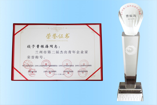 2013年11月8日,為表彰蘭州市杰出(優(yōu)秀)青年企業(yè)家在我市經濟發(fā)展中所做的突出貢獻,市委組織部、市工信委、團市委等8家單位聯(lián)合授予曹振海等10名同志為“蘭州市第二屆杰出青年企業(yè)家”(同時授予另10名同志為“蘭州市第二屆優(yōu)秀青年企業(yè)家”)榮譽稱號。