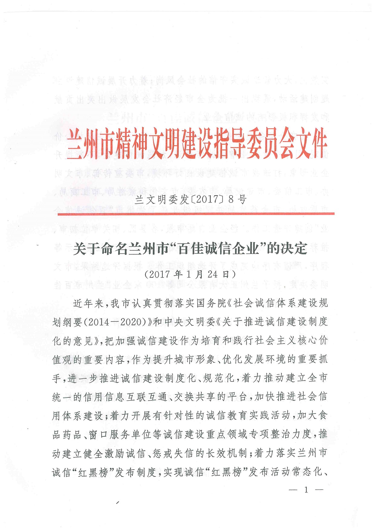 我公司被蘭州市精神文明建設(shè)指導(dǎo)委員會(huì)評(píng)定為蘭州市“百佳誠(chéng)信企業(yè)” By 海紅技術(shù) 2017-05-08 00:00:00 0次 上一篇:蘭州市人大常委會(huì)副主任李虎林一行20余人蒞臨我公司檢查指導(dǎo)工作 下一篇:蘭州交通大學(xué)在我公司建立教學(xué)實(shí)習(xí)基地