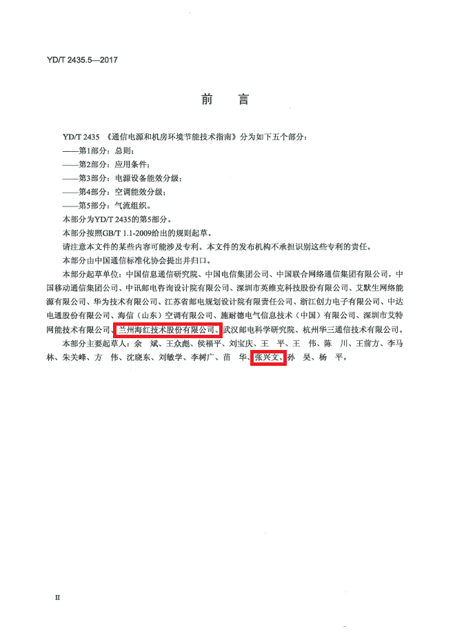 我公司參與起草的《通信電源和機(jī)房環(huán)境節(jié)能技術(shù)指南 第5部分:氣流組織》行業(yè)標(biāo)準(zhǔn)(YD/T 2435.5-2017)經(jīng)中華人民共和國(guó)工業(yè)和信息化部批準(zhǔn)發(fā)布,于2017年7月1日正式實(shí)施。我公司技術(shù)中心研發(fā)部工程師張興文參與了該標(biāo)準(zhǔn)的起草,該標(biāo)準(zhǔn)也是首個(gè)我司參與起草正式出版的行業(yè)標(biāo)準(zhǔn)。