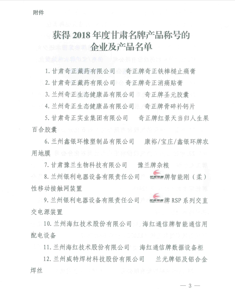 我公司生產(chǎn)的“海紅通信”牌智能通信用配電設(shè)備和數(shù)據(jù)設(shè)備柜兩個(gè)產(chǎn)品獲得2018年度“甘肅名牌產(chǎn)品”稱號(hào)。此次“海紅通信”牌數(shù)據(jù)設(shè)備柜是首次獲得“甘肅名牌產(chǎn)品”稱號(hào),“海紅通信”牌智能通信用配電設(shè)備已是連續(xù)第三次獲得“甘肅名牌產(chǎn)品”稱號(hào),“海紅”牌智能電力儀表2017年已獲得“甘肅名牌產(chǎn)品”稱號(hào),至此我公司擁有三個(gè)產(chǎn)品獲得“甘肅名牌產(chǎn)品”稱號(hào),這充分體現(xiàn)了市場(chǎng)對(duì)我公司產(chǎn)品質(zhì)量、品牌的認(rèn)可,有利于我公司不斷擴(kuò)大品牌影響力,發(fā)揮品牌優(yōu)勢(shì),進(jìn)一步提高產(chǎn)品市場(chǎng)競(jìng)爭(zhēng)力,將對(duì)我公司未來生產(chǎn)經(jīng)營(yíng)發(fā)展產(chǎn)生積極影響。