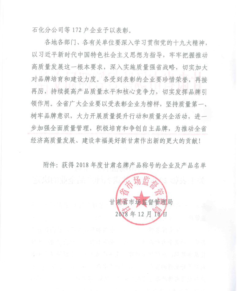 我公司“海紅通信”牌智能通信用配電設(shè)備和數(shù)據(jù)設(shè)備柜兩個(gè)產(chǎn)品獲得2018年度“甘肅名牌產(chǎn)品”稱號(hào)