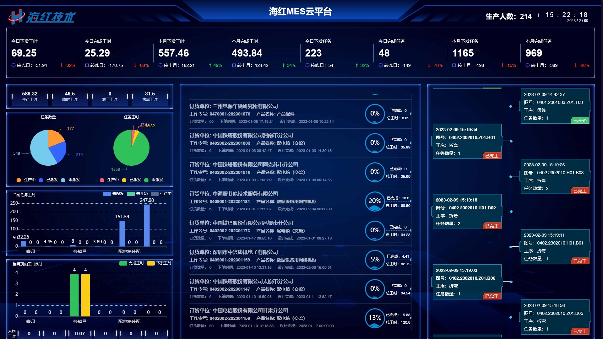 近年來(lái)我司非常重視信息化、智能化建設(shè),不斷提高設(shè)備的自動(dòng)化、智能化水平,并自主研發(fā)搭建海紅MES系統(tǒng)(生產(chǎn)制造執(zhí)行信息化管理系統(tǒng))及BPM系統(tǒng)(業(yè)務(wù)流程管理系統(tǒng)),將生產(chǎn)制造與大數(shù)據(jù)、人工智能等信息技術(shù)進(jìn)行深度融合,實(shí)現(xiàn)產(chǎn)品生產(chǎn)過(guò)程全流程精細(xì)化管控。